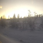 In Boden kam ich um 10:30 an und der Morgen war merklich dunkler im Vergleich zu dem in Göteborg. Die Zugfahrt nach Kiruna dauerte noch einmal 4 Stunden und war eine der beeindruckendsten Fahrten die ich je in einem Zug erlebt habe. Die Landschaft draußen war an Schönheit nicht zu überbieten und erinnerte eher an eine geeignete Umgebung für einen Film oder ein Märchen.
