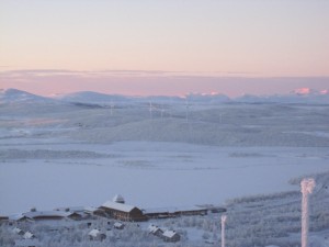 Im Vordergrund sieht man den Bahnhof Kirunas